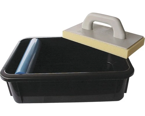 Waterbak met een kunststof gelagerde rol Kunststof inwrijfbord met een 30 mm Hydrospons