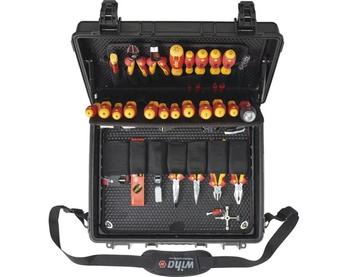 De gereedschaphouders in de 83-delige elektricienskoffer Competence XL zijn ontworpen voor efficiënt werken, zodat alle gereedschappen snel en eenvoudig toegankelijk zijn. Met de omvangrijke uitrusting hebben elektriciens voor elke toepassing het passende gereedschap paraat, zoals bijvoorbeeld de magazijnbithouder LiftUp electric, volledig geïsoleerde schroevendraaiers uit de Wiha slim-family en de installatietang TriCut. De grote opbergruimte van de gereedschapkoffer biedt bovendien veel ruimte voor klein materiaal en elektrische machines. De van robuuste polypropyleen kunststof gemaakte koffers zijn voorzien van gasveren, die het deksel in verschillende standen vasthouden en voorkomen dat het vanzelf dichtvalt. Beknelling van de vingers en ander letsel wordt zo tot een minimum beperkt.